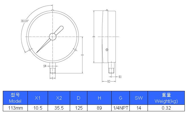 113mm(4.5") . process pressure gauge