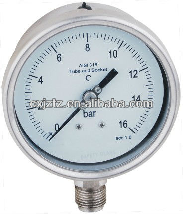 Stainless Steel Pressure Gauge are suitable for measuring the pressure of liquid, gas, and steam or vacuum, which are non-crystalloid and non-concretionary, and have no danger of explosion and do not erode steel .