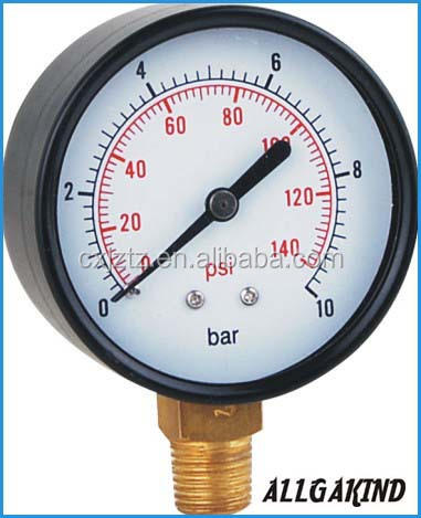 63mm bottom pressure gauge with black steel case and black bezel brass connection high pressure
